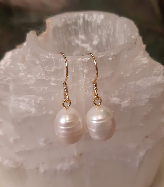 690 parelmax Prachtige lange vergulde Maxima zoetwater parel oorbellen, 17,50 euro