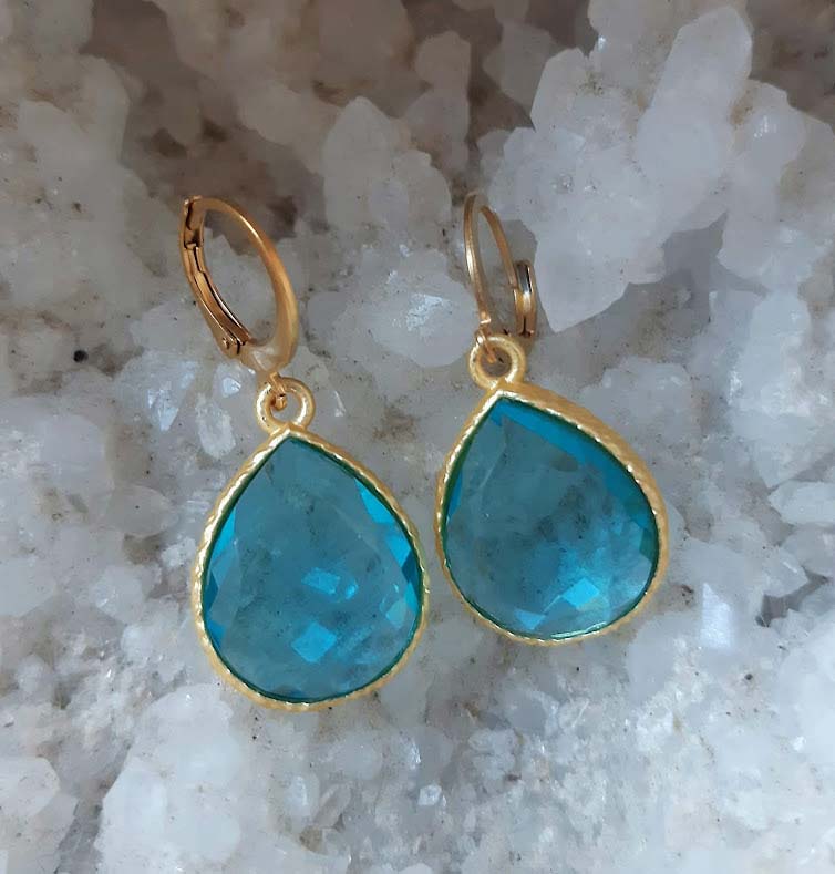 6502AGH Prachtige aquamarijn oorbellen met edelstalen zilveren- of gouden oorhaakjes, 9,95 euro